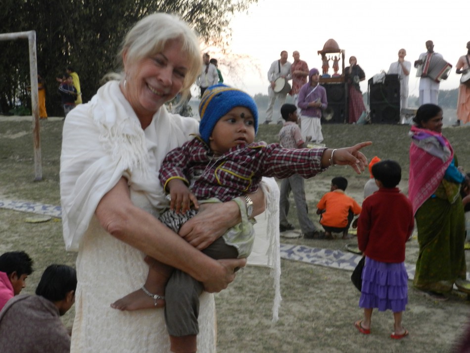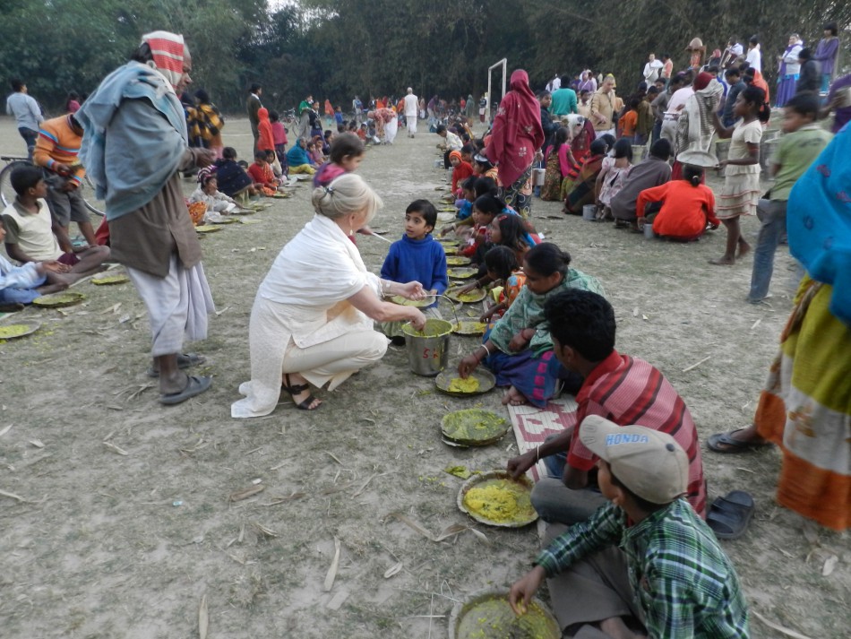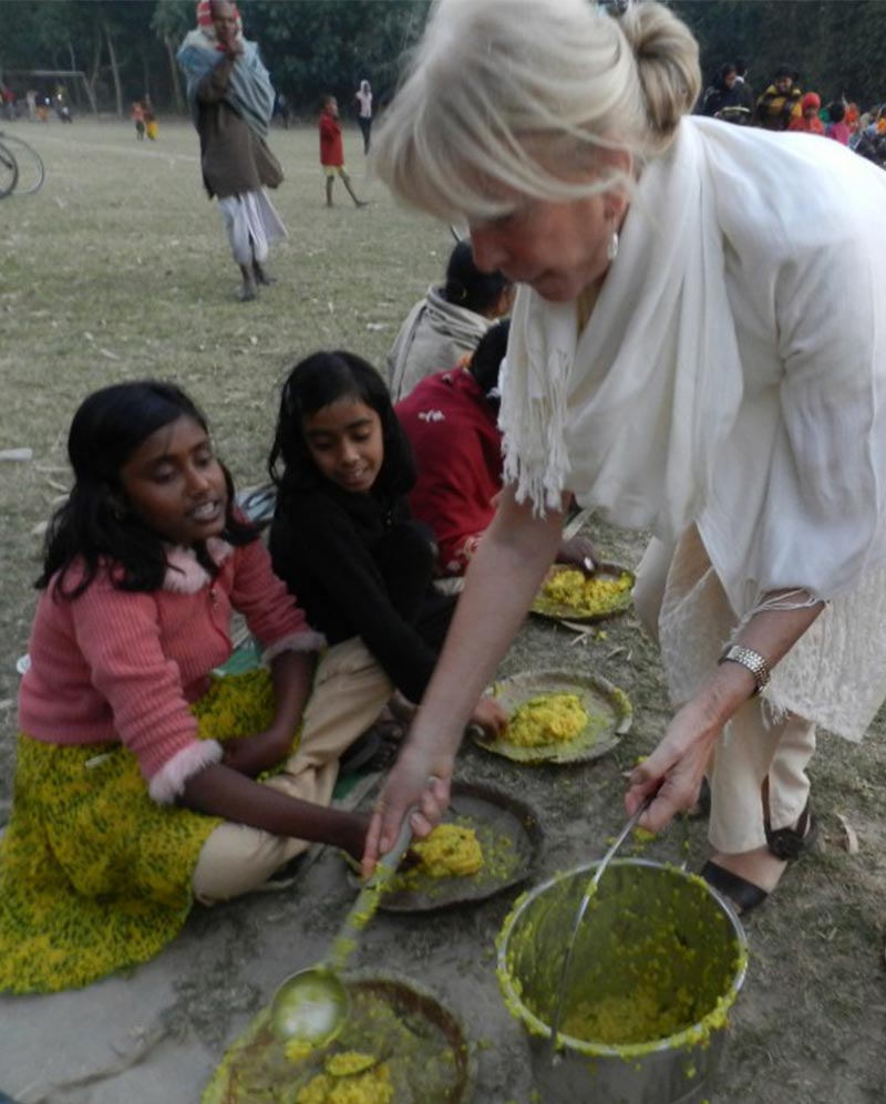 Mir liegt das spirituelle Projekt «Food for Life» sehr am Herzen, das ich schon viele Jahre aktiv unterstütze. Mit einem Boot, das auf dem Ganges gechartert wird, werden abgeschiedene Dörfer besucht und alle Kinder und Mütter mit frisch gekochtem Essen versorgt. (Prashadam, Gott geweihtes Essen)