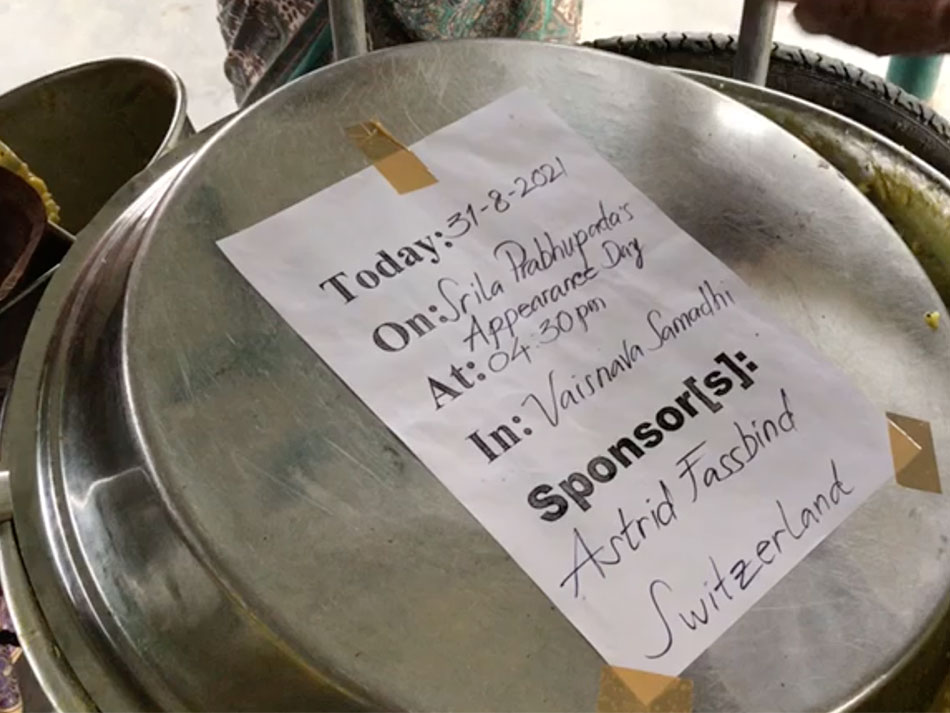 Dieses Video zeigt wie sich die Mönche und ihre Schwester Suseveni bei der Verteilung der gesegneten Nahrung aktiv selbst beteiligen.